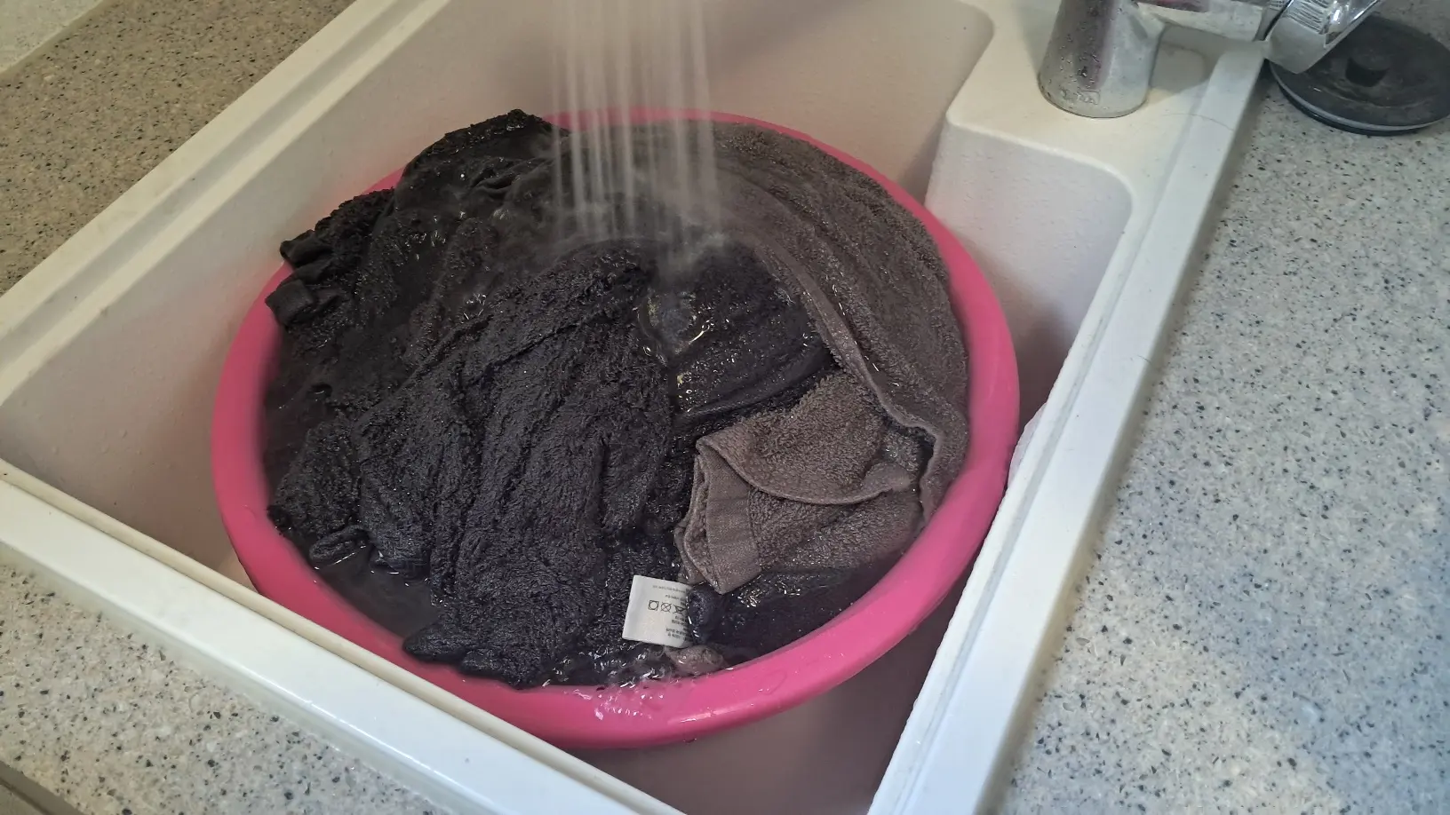 뜨거운 물에 과탄산소다를 잘 풀고 집에서 쓰는 수건을 다 때려 넣어주세요.