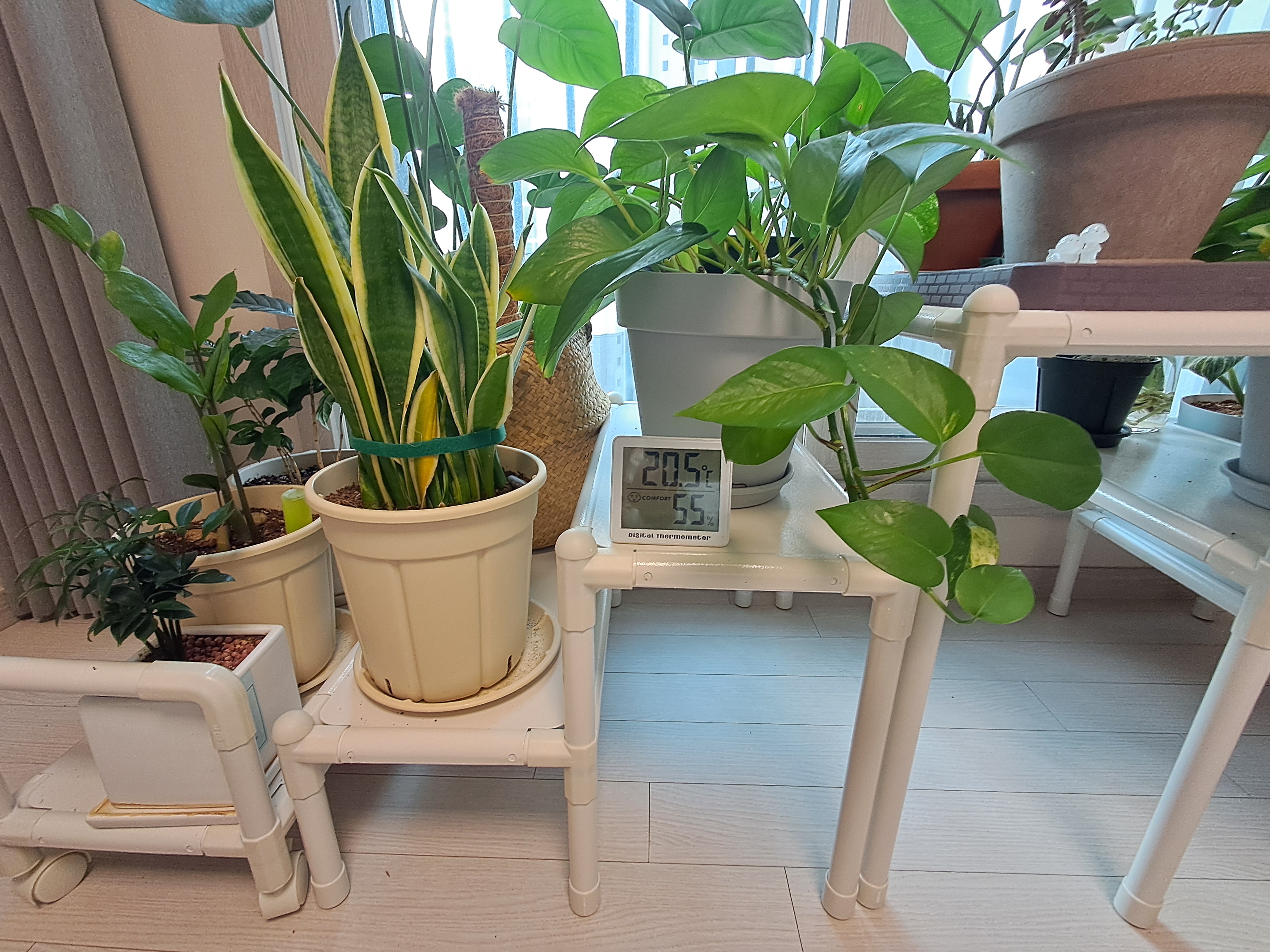 햇빛을 좋아하는 식물은 창문 쪽으로, 무거운 토분은 가벼운 플라스탁 화분으로 바꾸거나 밑으로 내려줬어요.