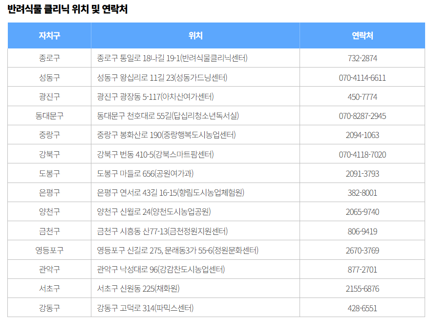 기존 반려식물 클리닉은 종로구, 동대문구 등 9개가 있었어요.