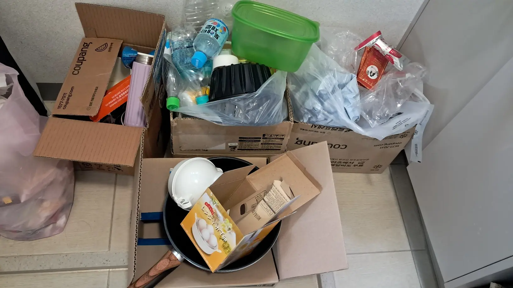 프라이팬도 바꿔주고, 오래된 플라스틱 제품도 버립니다. 속이 시원하네요.