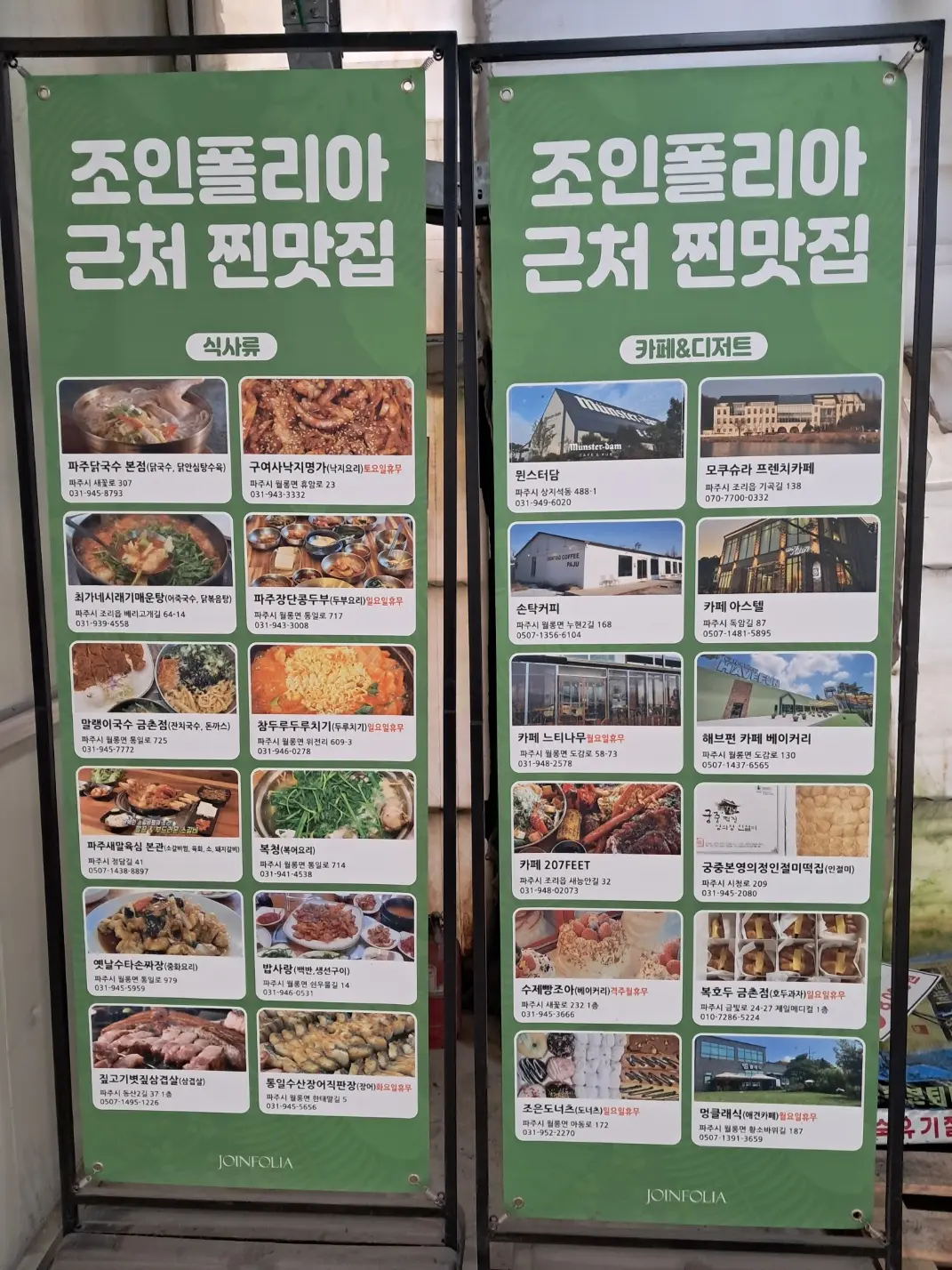 입구에는 조인폴리아에서 가까운 파주 맛집과 케페가 친절하게 안내되어 있으니 참고하세요.